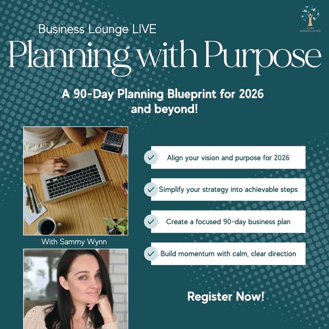 Join us for this inspiring Business Lounge Live workshop where we’ll map out your next 90 days with purpose, focus, and flow. ACMM Mentor Sammy Wynn will guide you through a practical, heart-centred process to help you turn your big dreams into an achievable action plan.